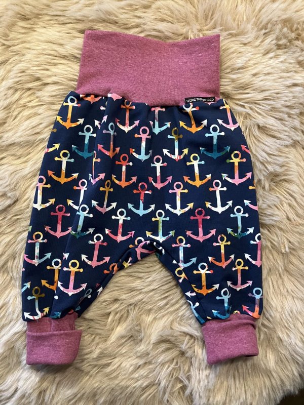 Pumphose "Anker" in der Größe 74/80, genäht aus Baumwollsweatstoff (95% Baumwolle, 5 % Elasthan), über zwei Größen mitwachsend, handmade im Burgenland