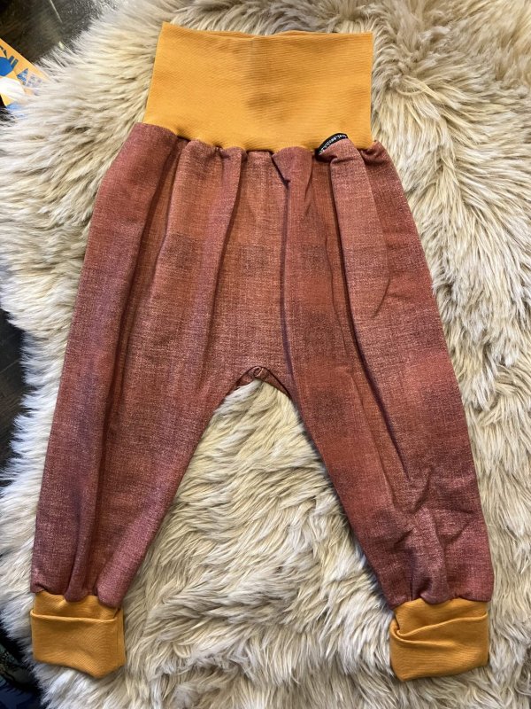 Pumphose "Rost" in der Größe 98/104. Aus Bio-Baumwollsweat, über zwei Größen mitwachsend, handmade im Burgenland.