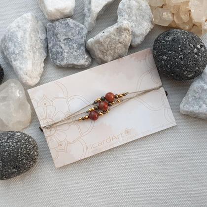 Von Hand gefertigtes Armband mit rotem Jaspis (6mm) & längenverstellbarem Schiebeknoten zum individuellen anpassen.