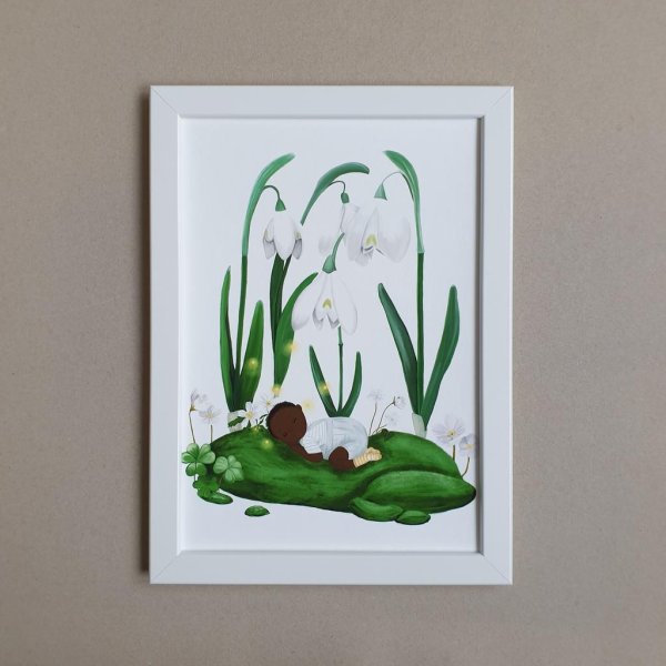 Ein personalisiertes Geburtsposter ist eine wunderbare Möglichkeit den Zauber dieses Augenblicks festzuhalten. Das erste Geburtsposter meiner Serie "Die vier Jahreszeiten" zeigt ein schlafendes Baby auf weichem Moos unterhalb der ersten Frühlingsboten.