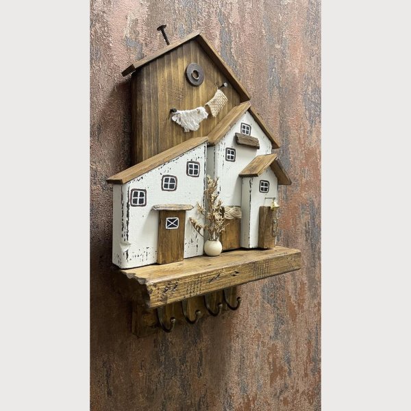 Schlüsselbrett aus Holz mit kleinen Häuschen . Landhausstil, Shabby chic