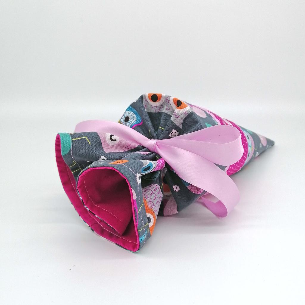 Alle Schultüten bestehen zu 100% aus Baumwollstoff und man kann sie problemlos in der Waschmaschine waschen. Der obere Teil ist so genäht, dass man auch auf der Innenseite keine unschöne Naht sieht. Die Schultüte lässt sich mit einem weichen Satinband ganz einfach zubinden.