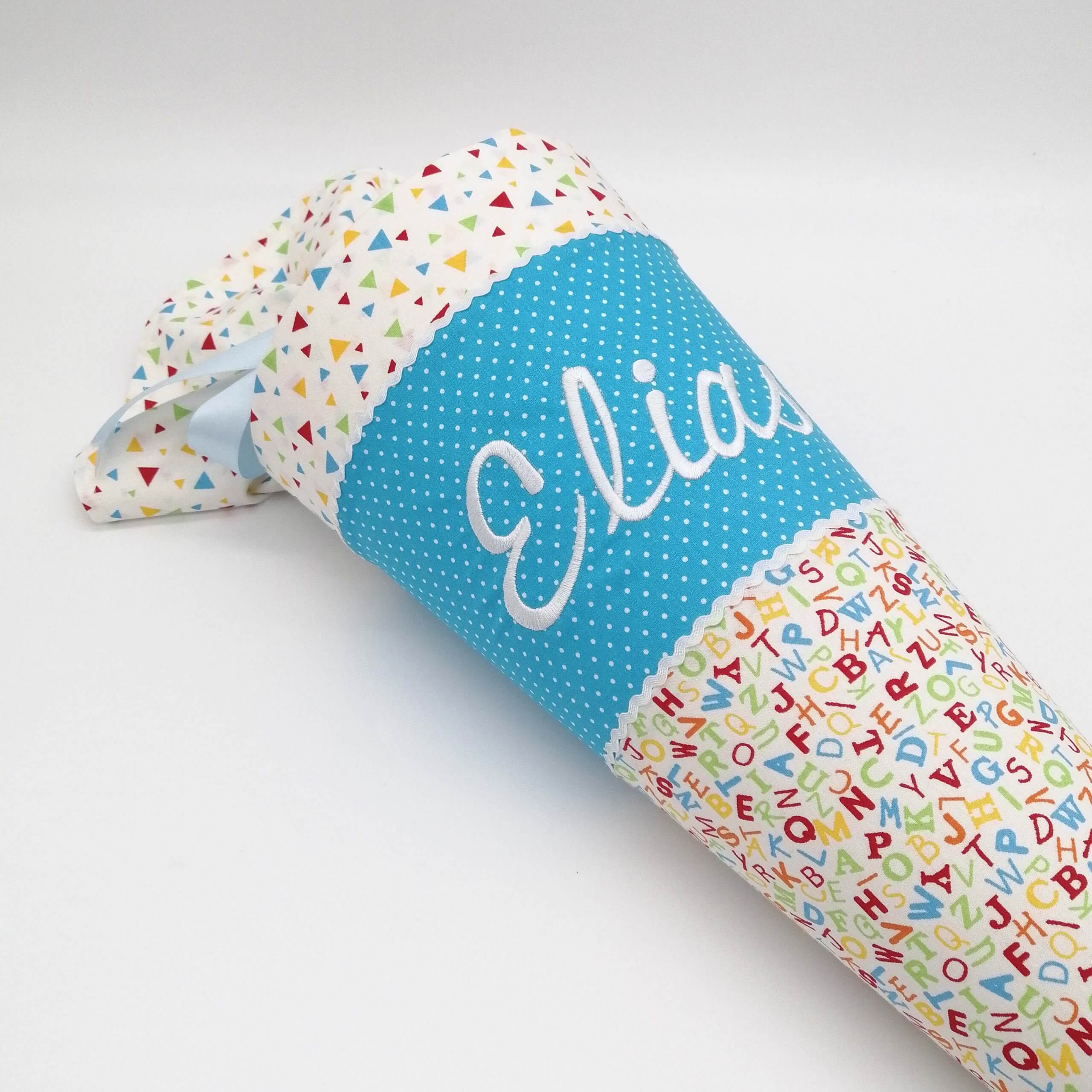 handgenähte Schultüte aus Stoff – individuell bestickt – optional mit Füllkissen für nach dem Schulbeginn