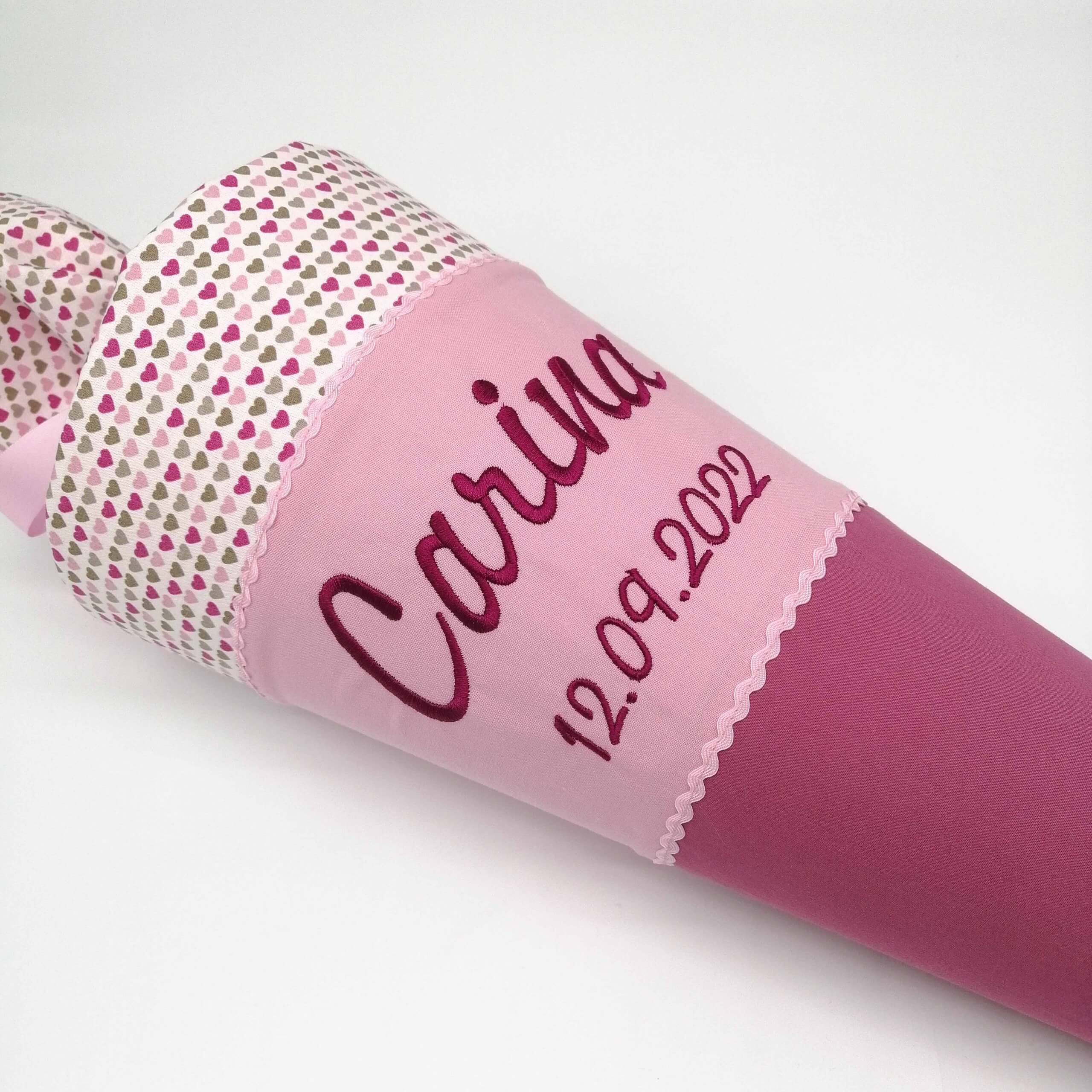 handgenähte Schultüte aus Stoff – individuell bestickt – optional mit Füllkissen für nach dem Schulbeginn