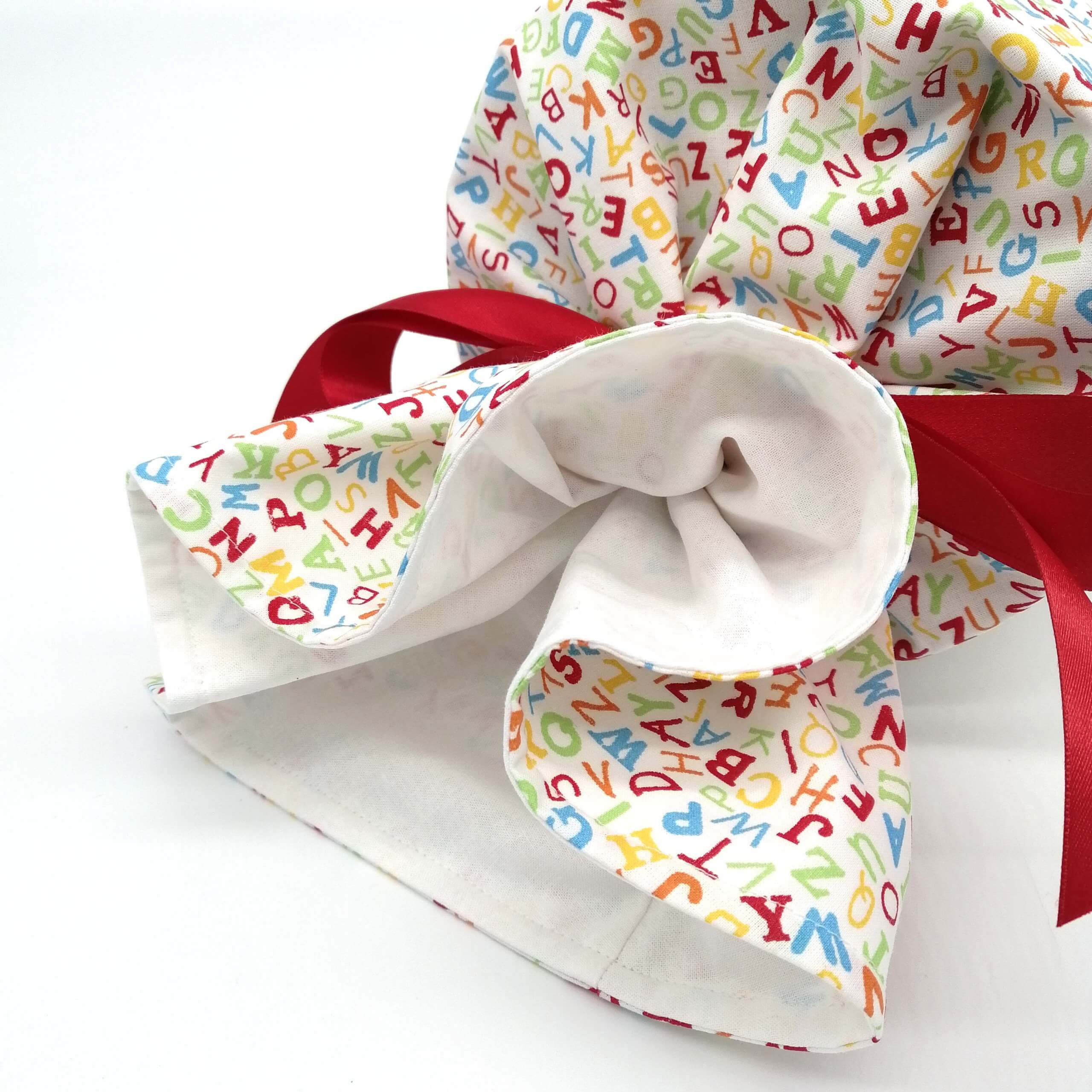 Alle Schultüten bestehen zu 100% aus Baumwollstoff und man kann sie problemlos in der Waschmaschine waschen. Der obere Teil ist so genäht, dass man auch auf der Innenseite keine unschöne Naht sieht. Die Schultüte lässt sich mit einem weichen Satinband ganz einfach zubinden.