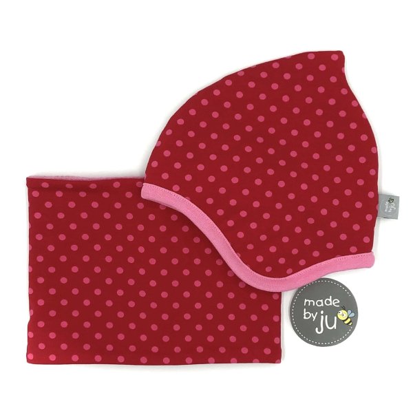 Zum ShopSET WINTER- HAUBE + LOOPSCHAL – PUNKTE DUNKELPINK (Größe wählbar)