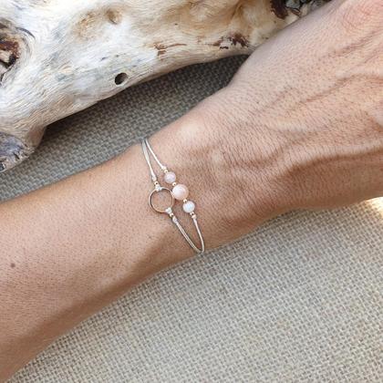 Kraftvolles Sonnenstein Armband mit 18k vergoldetem Edelstahlverbinder (10mm Durchmesser), 2mm Perlen aus 18k vergoldetem Kupfer & natürlichen Sonnensteinperlen mit 4 & 6mm Durchmesser. Von Hand gefertigt mit gewachstem Makrameegarn (wasserfest & strapazierfähig) & längenverstellbarem Schiebeverschluss zum individuellen anpassen.