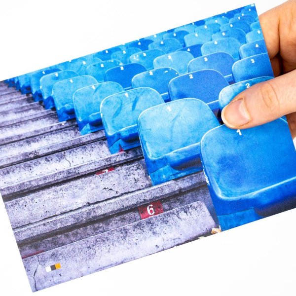 Abenteuer #01 zeigt einen Teil der Tribüne des Estadio Vicente Calderón in Madrid, der alten Heimstätte von Atlético Madrid.