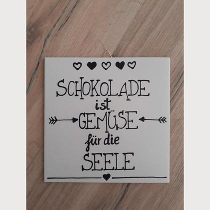 Spruchfliese schwarz „Schokolade ist Gemüse für die Seele“