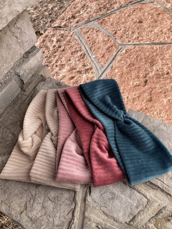 Zeitloses, warmes Cordjersey-Stirnband in verschiedenen Farben.