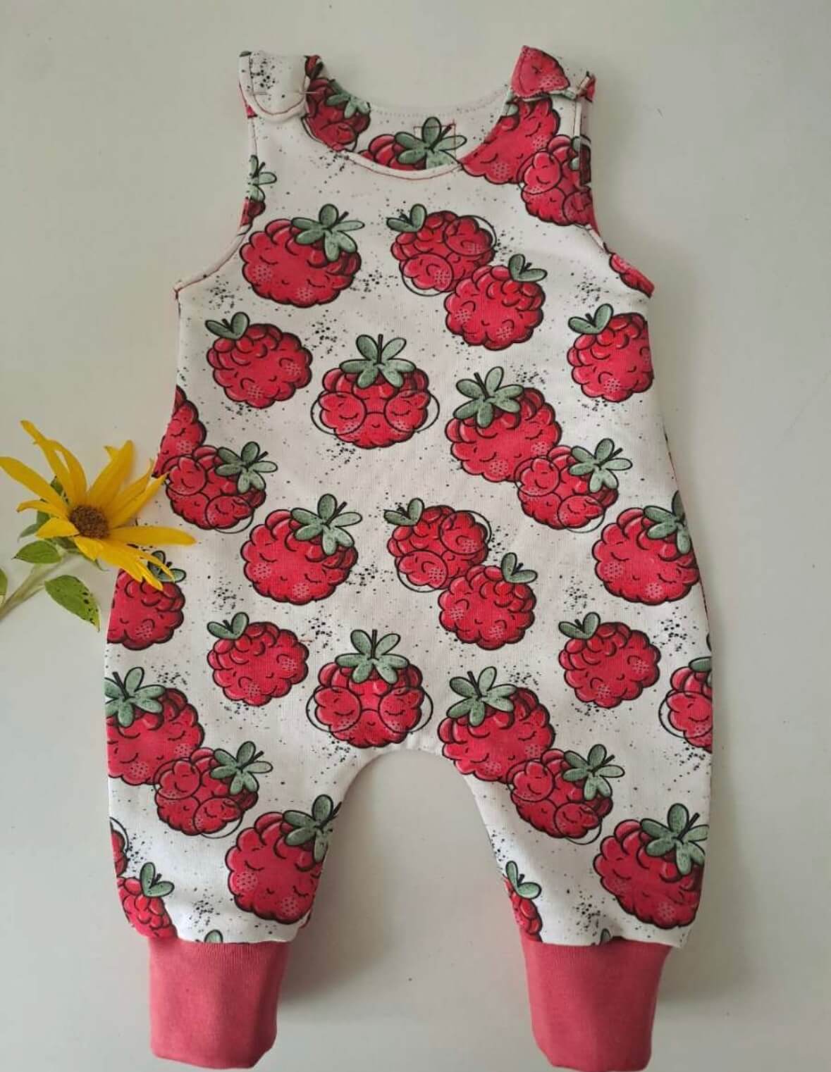 Strampler ist in Gr. 50 ( eher größer geschnitten) genäht und in Bioqualität.