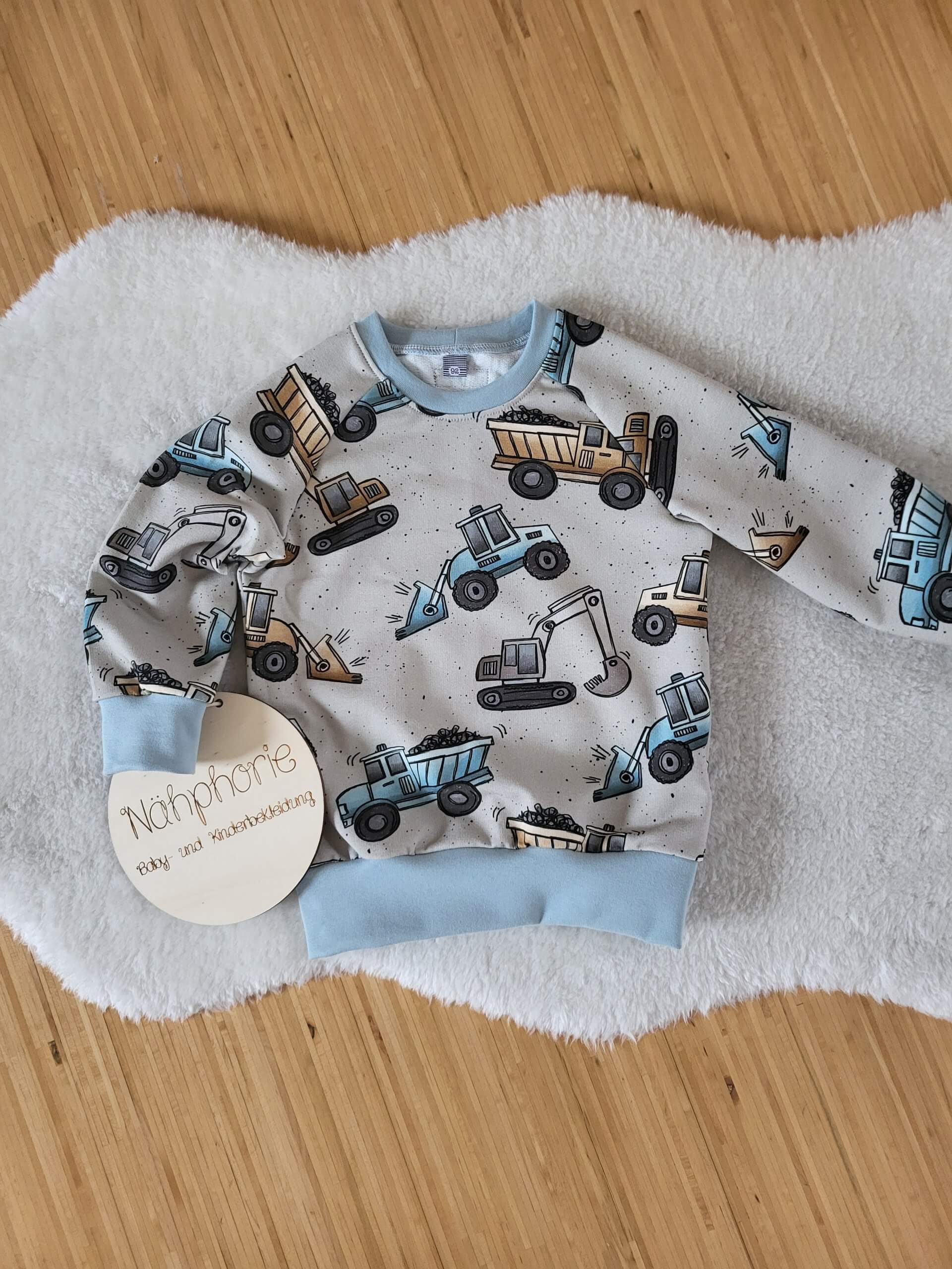 Handmade Sweater aus weichem French Terry in Gr. 92 mit tollen Baufahrzeugen