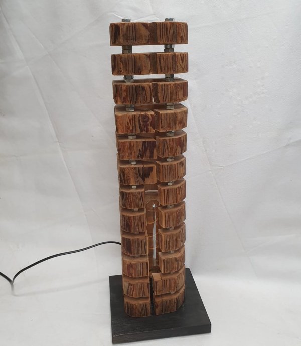 Tischlampe aus Altholzbalken