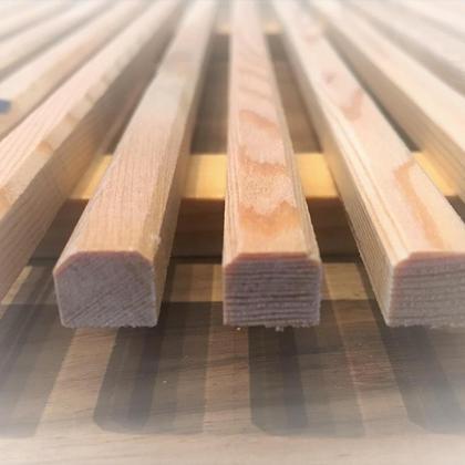 Topfuntersetzer aus Lärchenholz extra gross, 60x30x2 cm . Oberfläche unbehandelt, Stäbschen 3 seitig gehobelt und Kanten gefräst.