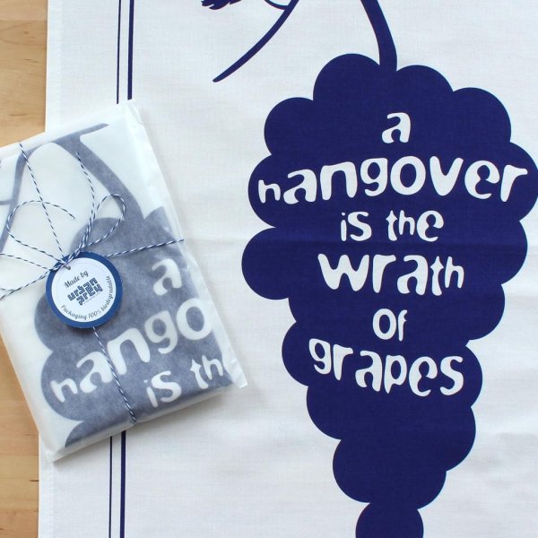 --Geschirrtuch "A hangover is the wrath of grapes"--