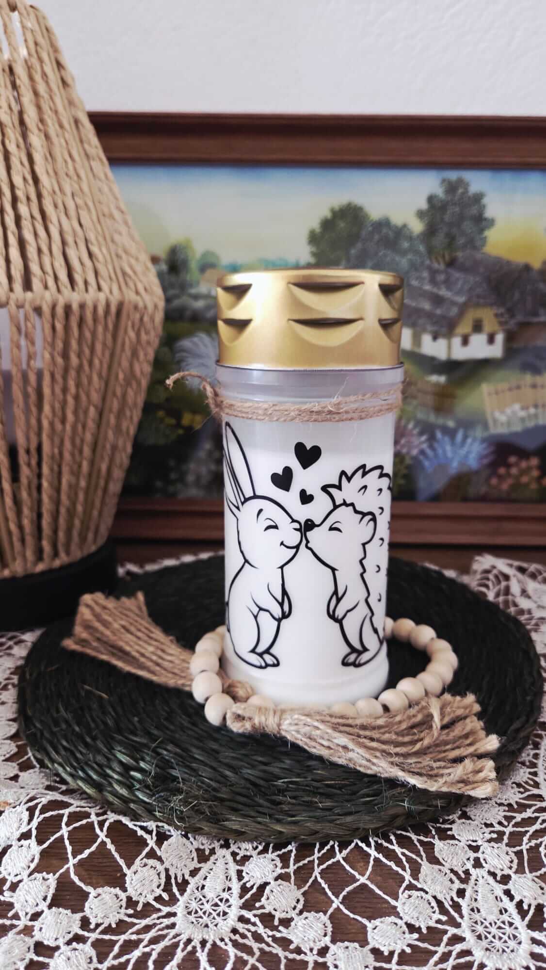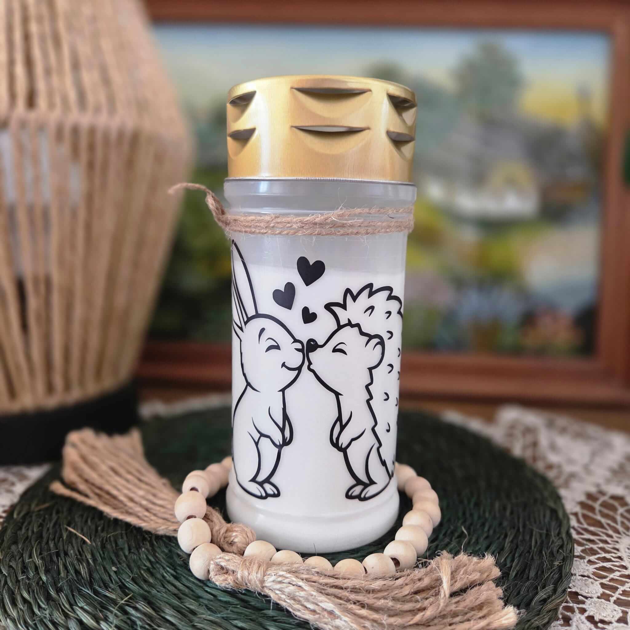 - Ganz besondere Trauerkerze mit dem Hase & Igel Motiv.