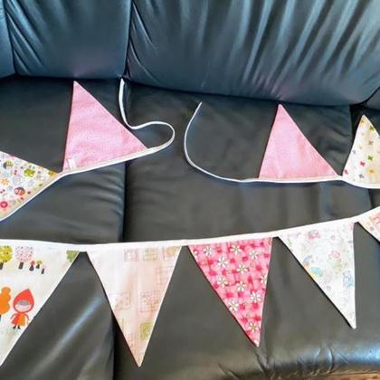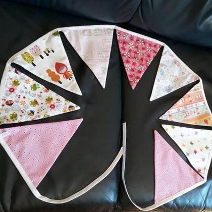 Diese Wimpelkette ist aus verschiedenen Baumwollstoffen mit 9 Wimpeln genäht und hat eine Länge vom 2,40.