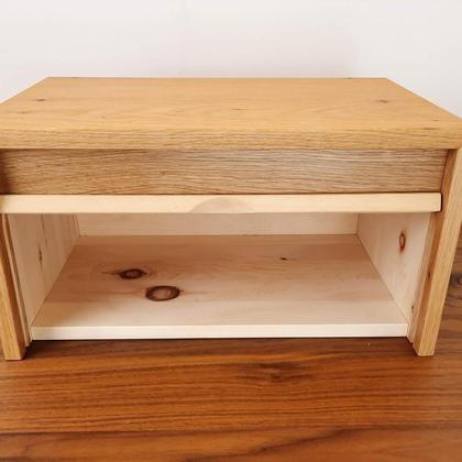Zeitgemäße Zirbenbrotdose: Korpus: Eiche, innen Zirbenholz, Lamellen aus Zirbenholz.