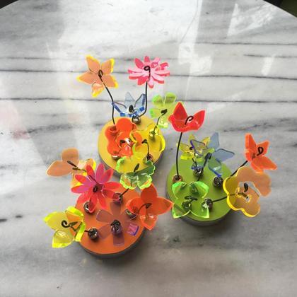Leuchtende Blumenmagneten aus fluoreszierendem Plexiglas. Jedes Stück handgemacht. Durchmesser Blume ca. 3,5 cm