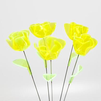 Leuchtende Rosen aus fluoreszierendem Plexiglas. Jedes Stück handgemacht. Stablänge 48 cm.