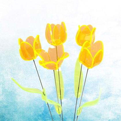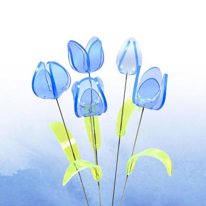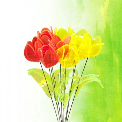 Leuchtende Tulpen aus fluoreszierendem Plexiglas. Jedes Stück handgemacht. Stablänge 48 cm.