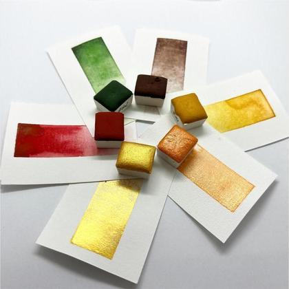 Handgemachte Aquarellfarben-Set „Herbst“, Wasserfarbe Schimmer + Matt