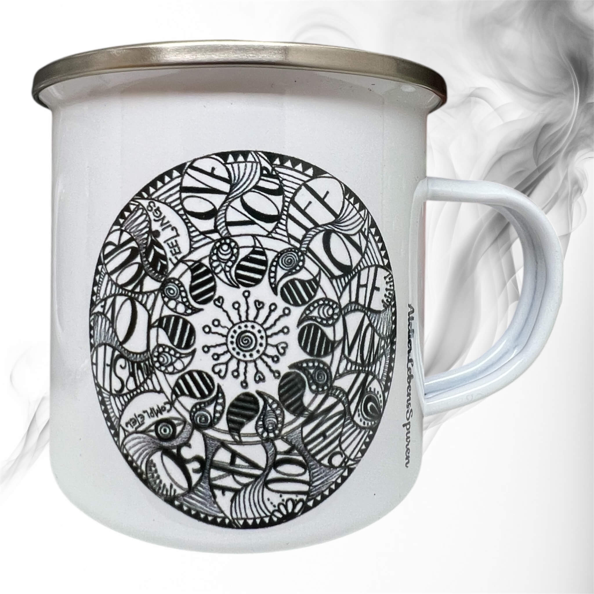 Meine neuen Emailtassen sind da und sie sind ganz unterschiedlich, genauso wie meine Art zu malen und zu schreiben. Dieser Schriftzug entstand in meiner Serie positive Wörter. Feelings....Viele Botschaften sind versteckt Love your life....usw Eine wunderschöne Emailtasse, auch für unterwegs!