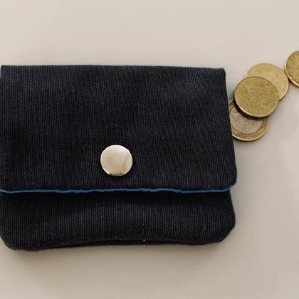 Kleine feine Geldbörse, aussen grau, innen türkis/blau, dunkelblauer Reißverschluss beim Münzfach, mit Druckknopf zum verschließen. Genug Platz für ein paar Karten und Papiergeld. GRATISZUSTELLUNG in Graz