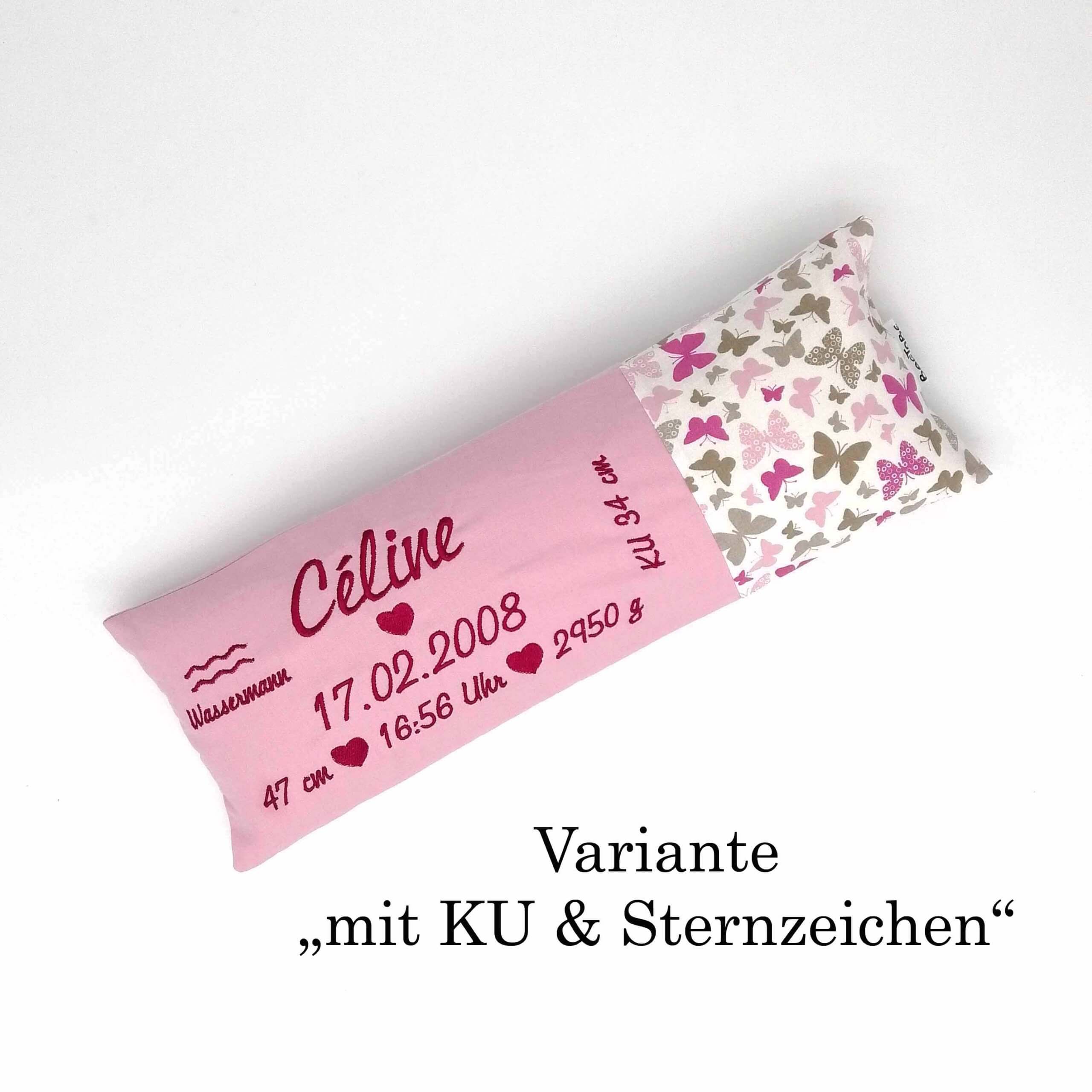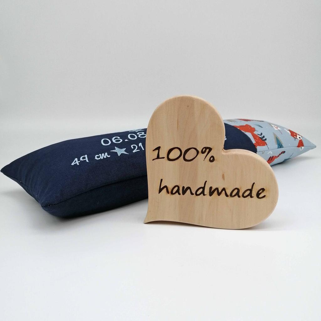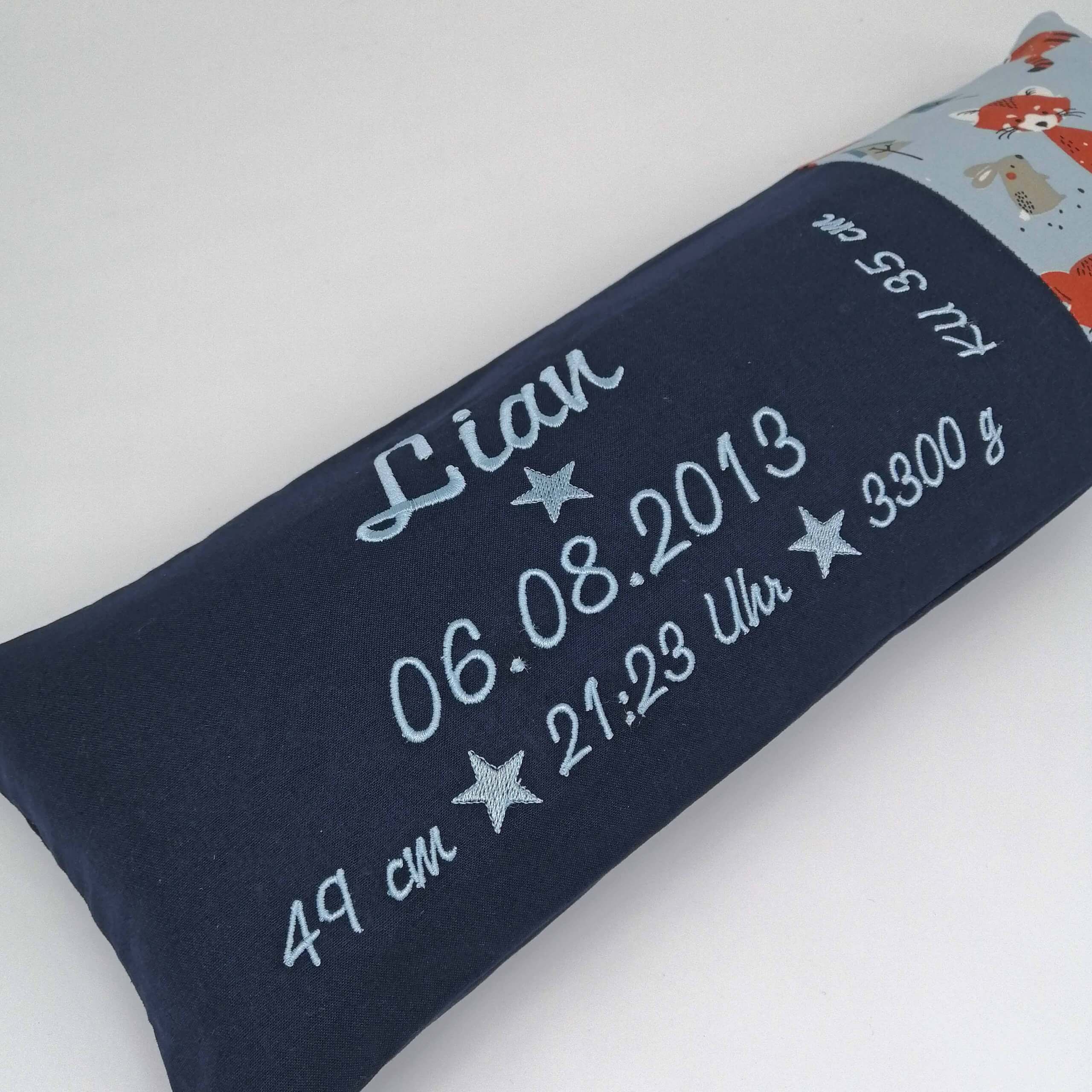 handgenähtes, besticktes Geburtskissen – das perfekte Geschenk zum Baby