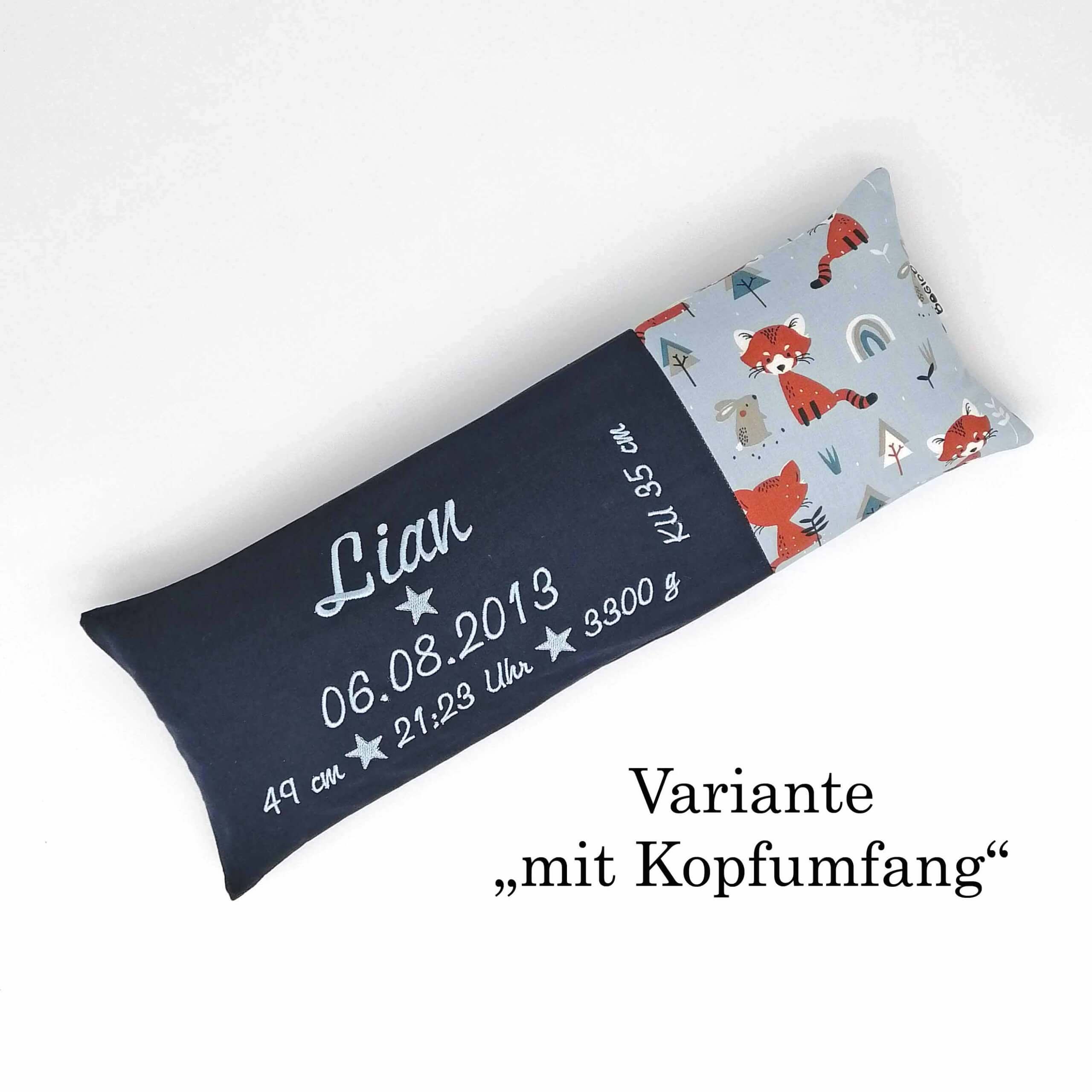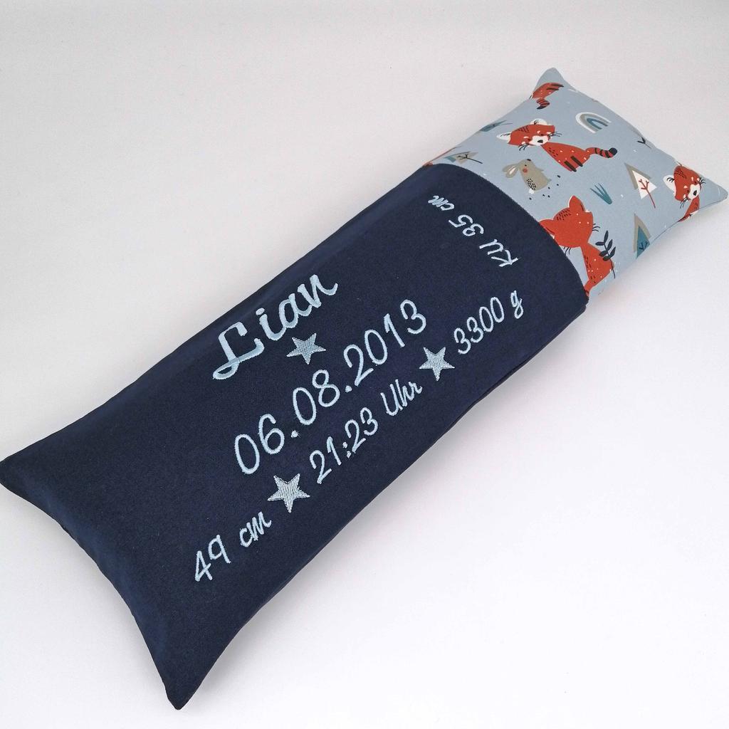 Geburtskissen/Erinnerungskissen Füchse marine mit Echtmaßen und Gewicht