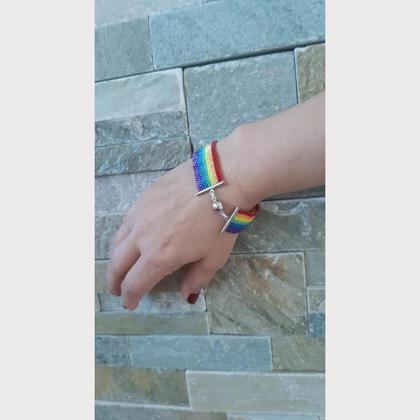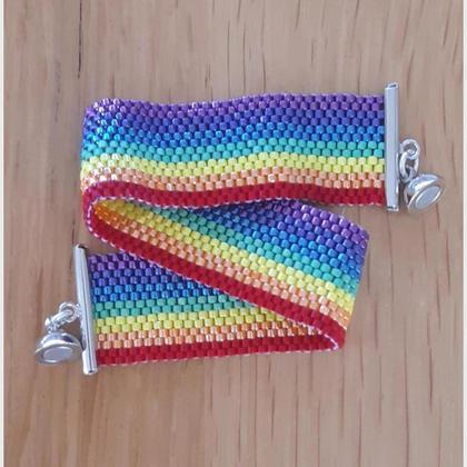 Als Zeichen gegen Homophobie oder einfach nur weil es gefällt :-) Handangefertigtes Armband aus Tirol in Peyote-Technik mit Miyuki-Delica 11/0 mm in Regenbogenfarben und silberfarbenen Magnetverschluss; ca. 18,0 cm;