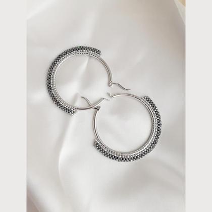 Minimalistisch edel. Diese Hoopohrringe (Durchmesser von 40 mm ) aus rhodiniertem 925er Sterling Silber und einem praktischen Latch-Back-Verschluss ist garantiert ein hochwertiges, zeitloses Modeschmuckstück designed und handangefertigt by BeadyLook mit viel Liebe und Genauigkeit. In der Brick-Stich-Webe-Technik mit Miyuki-Delica-Perlen 11/0 (1,6 mm) in Grau Vitrail Matt und silbrigen Sesamperlen, schmiegt sich dieses Design sanft an dein Ohrläppchen und wird ganz ohne Glitzer und Glamour zum Eyecatcher.Die klassisch-schönen Creolen harmonieren zu vielen Outfits und lassen sich gut mit anderen Schmuckstücken kombinieren. Mein Schmuck ist eine sentimentale Überraschung, ein tolles Geschenk oder ideal für die Eigenliebe einer selbstbewussten Frau. Je mehr reines Silber in einem Schmuckstück verarbeitet wird, desto heller glänzt es. Gleichzeitig ist es aber auch anfälliger für Kratzer und Ähnliches. Made-with-Love-in-Tyrol Materialeinkauf ausschließlich innerhalb Europas "Freies Gewerbe" vorhanden, Abgabenfrei nach §333a GewO 1994!