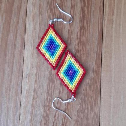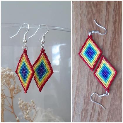 Als Zeichen gegen Homophobie oder einfach nur weil's gefällt :-) Handangefertigte Ohrringe in Ziegelstichtechnik in Regenbogenfarben mit Miyuki-Delica-Perlen 11/0, ca. 5,5 cm lang, Ohrhaken mit Silberanteil + Made-with-Love