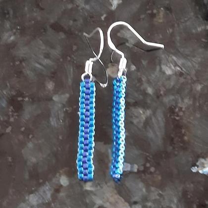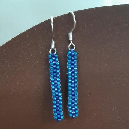 Ohrringe ZSII, ca. 4 cm lang - Händisch gefädelt im Ziegelstich mit Miyuki-Delica-Perlen 11/0 mittelblau/dunkelblau, Ohrhaken echter Silberdraht;
