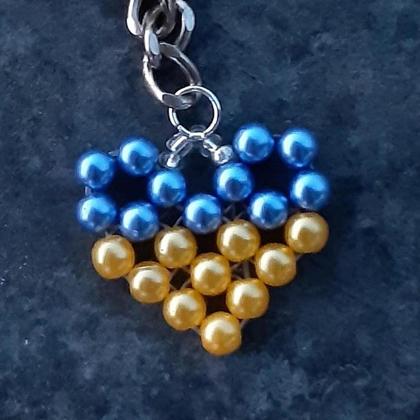 Schlüsselanhänger "UkraineHerz" Händisch gefädelt (Titanium-) Glaswachsperlen (4 mm) in mittelblau/sonnengelb. 50% gehen an die Ukraine-Hilfe :-)