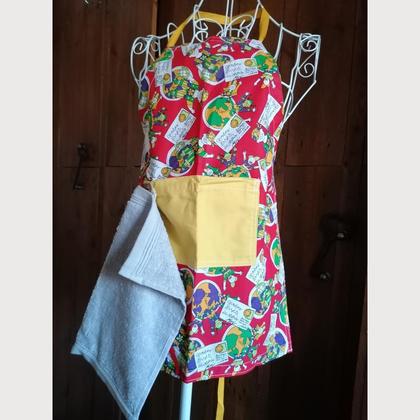 Aus Baumwollstoff, Größen verstellbar durch den flexiblen durchzugsband und mit praktischen Handtuch, liebe voll handgemacht.