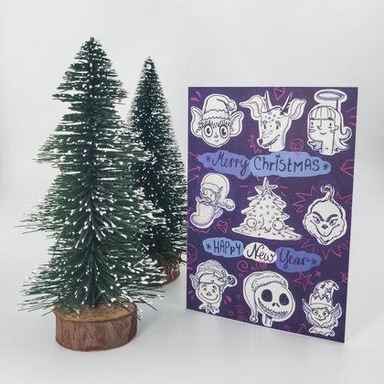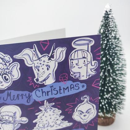Der etwas andere Weihnachtsgruß in Lila und Pink mit einer Sammlung an liebenswerten Figuren, die zu der festlichen Jahreszeit durch zahlreiche Filme, Werbespots und Geschichten huschen. Klappbare Grußkarte inkl. Briefumschlag C6 __Größe/Maße/Gewicht__ Druck DIN A6 __Verwendete Materialien__ 300 g/m3 hochwertiger Qualitätsdruck auf umweltschonendem Recyclingkarton
