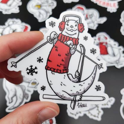 Dieser süße Otter düst warm eingepackt die schwarze Piste runter. Es kann ihm nicht schnell genug gehn! Und später gibt's dann zur Belohnung eine heiße Tasse Kakao... Einzelner Vinylsticker - Otter auf Skiern __Größe/Maße/Gewicht__ 75 mm x 75 mm __Verwendete Materialien__ Wetterfestes Vinyl - besonders robust und auch für Outdoor geeignet