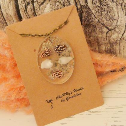 Die Kette ist der perfekte Hingucker und lässt sich perfekt mit jedem Outfit kombinieren. Der Anhänger ist aus Gießharz gegossen. Die Muscheln und der Sand wurden in das Harz eingebettet. Die Kette hat eine Länge von 38 cm (Ohne Anhänger) Der Anhänger hat eine Länge von 4 cm