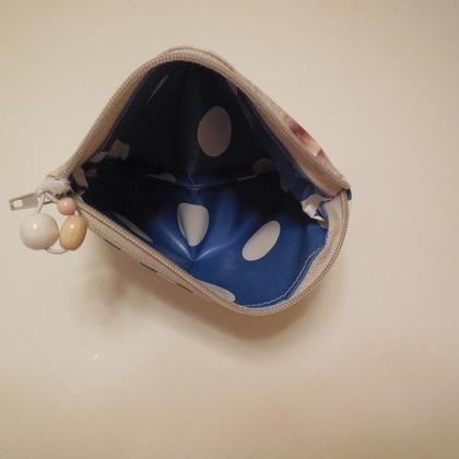 Dieses Krimskramstäschchen ist innen und außen aus Wachstuch genäht und kann leicht ausgewischt werden. Es ist 15 cm x 11,5 cm groß.