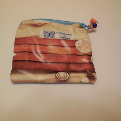 Dieses Krimskramstäschchen ist innen und außen aus Wachstuch genäht und kann leicht ausgewischt werden. Es ist 11 cm x 11 cm groß.