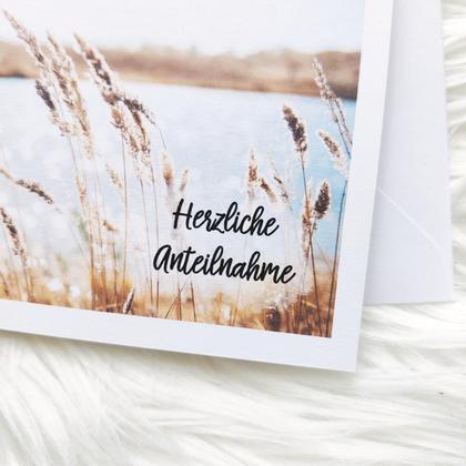 Diese Kondolenzkarte ist ein von mir mit viel Liebe erdachtes und entworfenes Design. Der schwarze Schriftzug "Herzliche Anteilnahme" ist auf die hochwertige Karte, mit matter Optik, gedruckt. Eine trostspendende Karte für einen traurigen Anlass. Die Klappkarte ist A6, 300g/m² Papier und wird mit einem farblich passendem Kuvert C6 geliefert. Es gibt auch ein passendes Stoffkuvert mit dem selben Motiv. (+€5,00 bitte im Bestellvorgang angeben) Abweichungen von den Bildern sind aufgrund verschiedener Bildschirmdarstellungen möglich. Folge mir gerne auch auf Instagram: @christinas_einzelstuecke