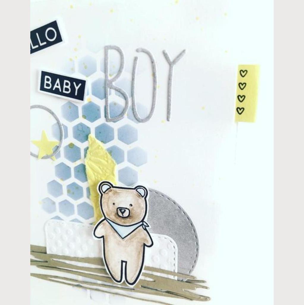 Entzückende Baby-Karte mit viel Liebe zum Detail. Der kleine Bär ist von mir coloriert. Ein Kuvert ist natürlich dabei