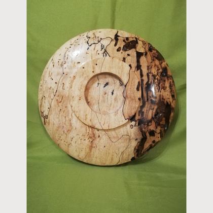 Schale aus gestockter Ahorn mit Epoxidharz. Der wurmstichige, leicht morsche Teil wurde mit Epoxidharz stabilisiert. Die Oberfläche wurde geölt und gewachst. Bärenstarke Optik Durchmesser 21cm, Höhe 4,5cm