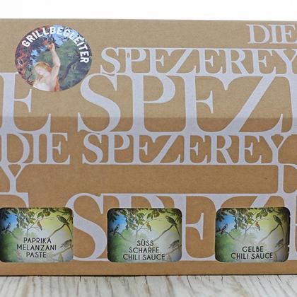 Das perfekte kulinarische Geschenk für alle Grillfans. Drei würzig bis scharfe Saucen für den Grillteller – ob zu Würstel, Gemüse, oder Fleisch – da sollte für jeden Geschmack etwas dabei sein. Die cremig würzige Paprika Melanzani Paste passt hervorragend zu Huhn und gegrilltem Gemüse. Die Süß Scharfe Chilisauce ist mit ihrer leichten Schärfe ein passender Allrounder zu jedem Grillessen. Und die Gelbe Chilisauce bringt mehr Schärfe auf dem Teller.
