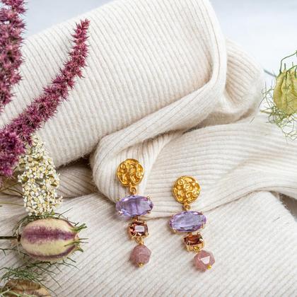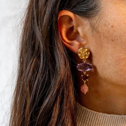 Materialen: Zamak Legierung - antiallergisch und nickelfrei Kristall und Amethyst Gewicht: 7 Gramm pro Ohrring Dimensionen: 5,5 cm Diese Ohrringe sind handgemacht, ihre Eigenschaften und ihr Erscheinungsbild können leicht variieren.