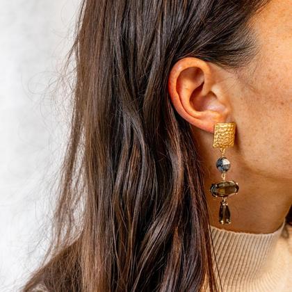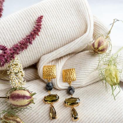 Materialen: Zamak Legierung - antiallergisch und nickelfrei Kristall und schwarzer Labradorit Dimensionen: 6,5 cm Diese Ohrringe sind handgemacht, ihre Eigenschaften und ihr Erscheinungsbild können leicht variieren.