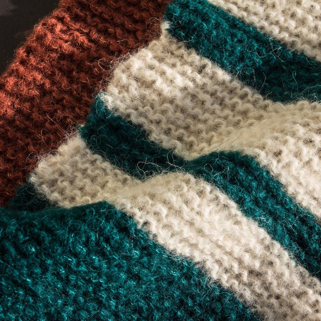 Alpaka Loop-Schal braun/naturweiß/grün Streifen