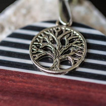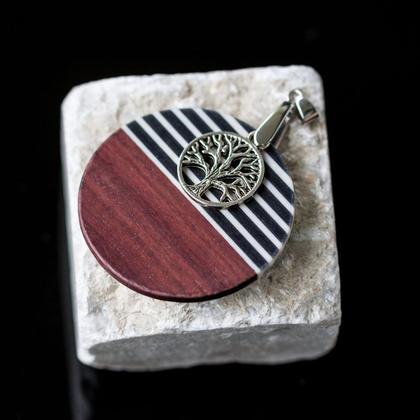 Anhänger aus Holz mit Resin kombiniert. Lebensbaum aus Edelstahl. Edelstahl für Allergiker geeignet. Durchmesser Anhänger 50 mm, Diurchmesser Lebensbaum 20mm.