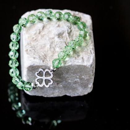 Armband aus Glasschliffperlen grün mit Kleeblatt